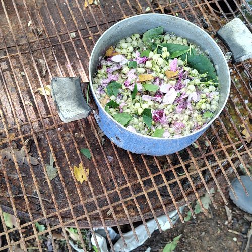 (La foto qui sopra è una zuppa di fiori e amicizia preparata dai bambini durante una gita)